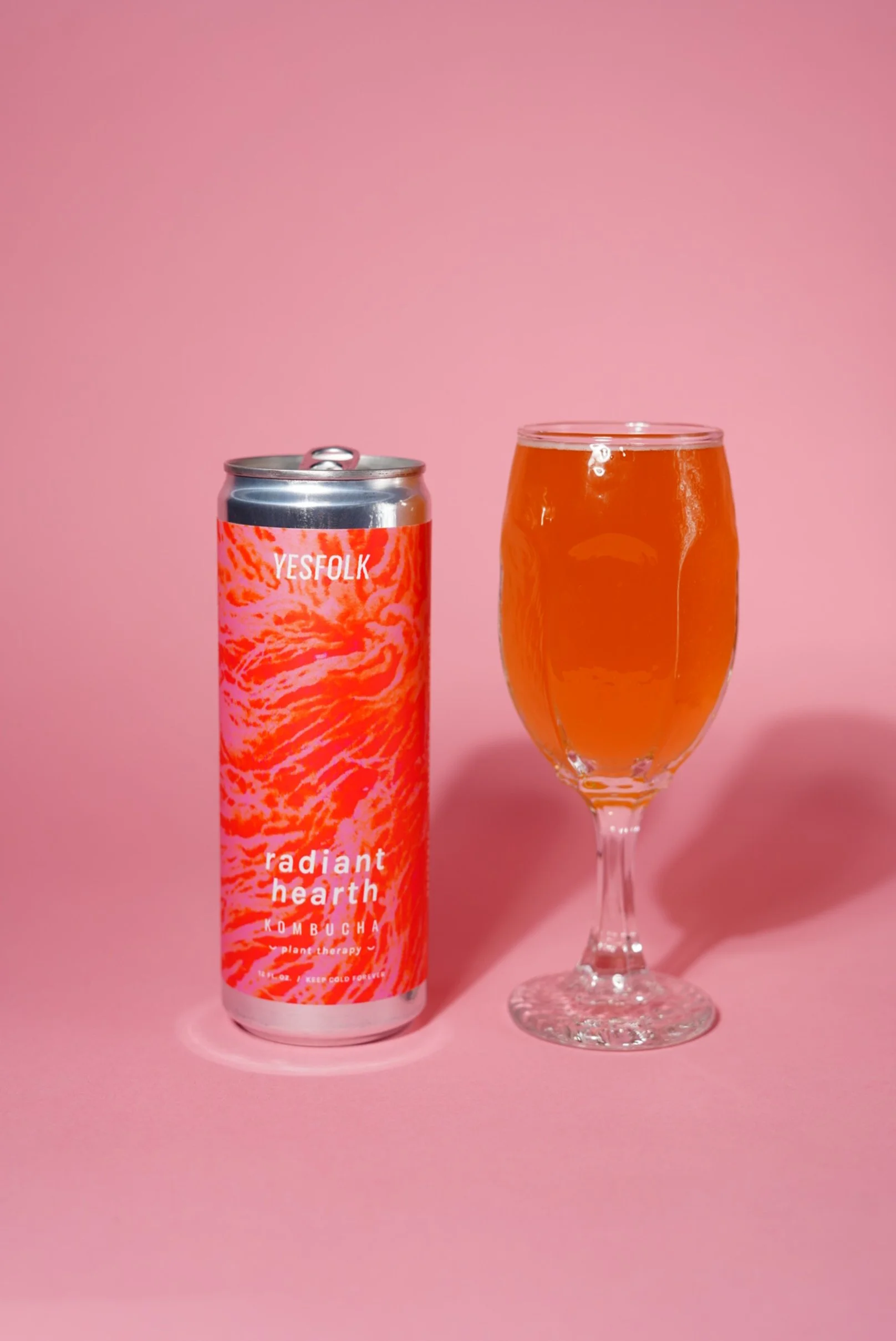 Fresh 4 pack of Radiant Hearth kombucha from our Plant Therapy Series. The Plant Therapy Series offers the therapeutic support of traditional plant allies. Wild-harversted Yaupon fermented in American Oak barrels using live active kombucha cultures and infused with Honeybush, Rose Petals and Hawthorn.